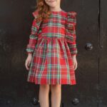 Vestido con braga cuadro vichy fucsia y mangas volantes