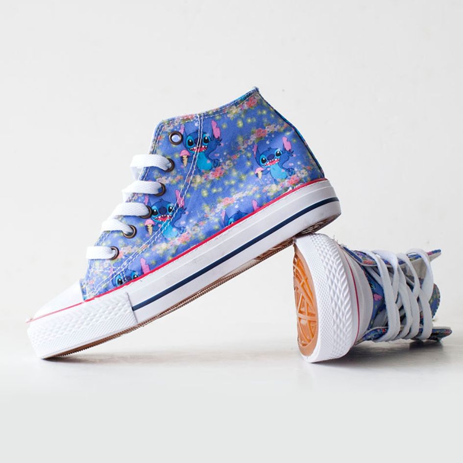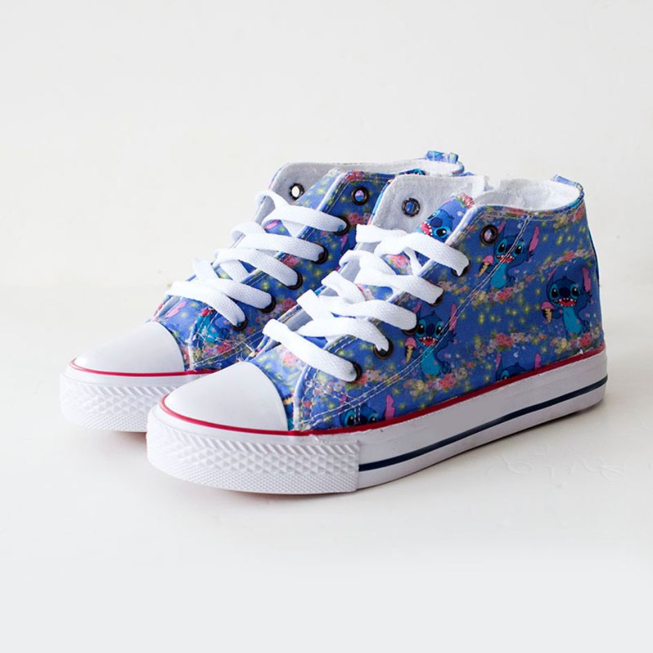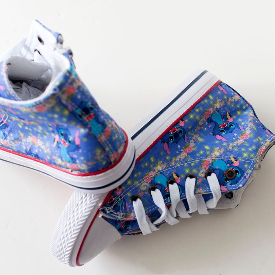 Botín de lona para niños y niñas con cordones. Interior de color blanco y puntera de goma. Fabricada en textil y piso de goma para una mayor flexibilidad.