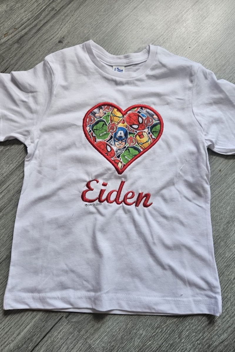 Modelo | camiseta-blanca-corazon-superheroes |
