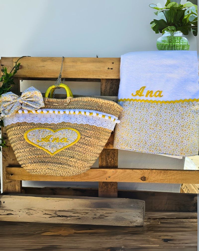 En www.telasyretales.com encontrarás la cesta de palma para la playa estampada de flores amarillas, un accesorio práctico y elegante para tus días de verano. Esta cesta ligera y resistente incluye una toalla, perfecta para llevar tus esenciales de playa con estilo. Cada pedido se confecciona a mano y tarda entre 7 y 10 días hábiles en elaborarse, con envío en 48-72 horas a toda la península. Renueva tu look de playa con este diseño exclusivo, combinando moda y funcionalidad. ¡Haz tu pedido ya y disfruta del verano con Telas y Retales! 🌞🌼👜