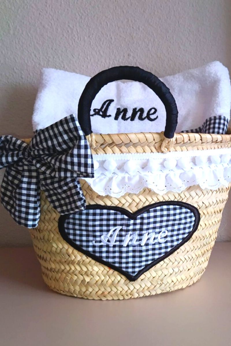 Cesta ideal para la playa y para la piscina de cuadros vichy negro. Incluye toalla a juego.