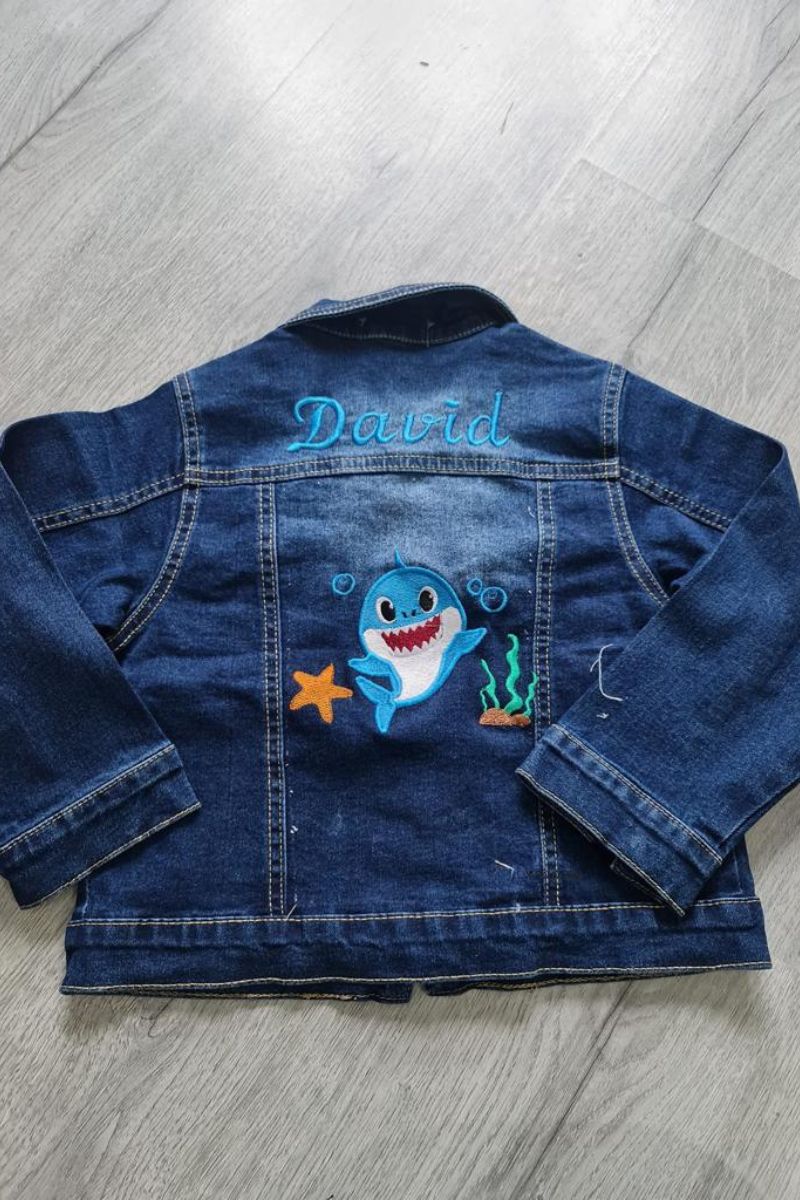 La nueva chaqueta vaquera de Baby Shark ha llegado a Telas y Retales para quedarse. La chaqueta vaquera de Baby Shark es toda un pasada que gusta tanto a pequeños como a grandes. Chaqueta vaquera oscura con bolsillos delanteros.