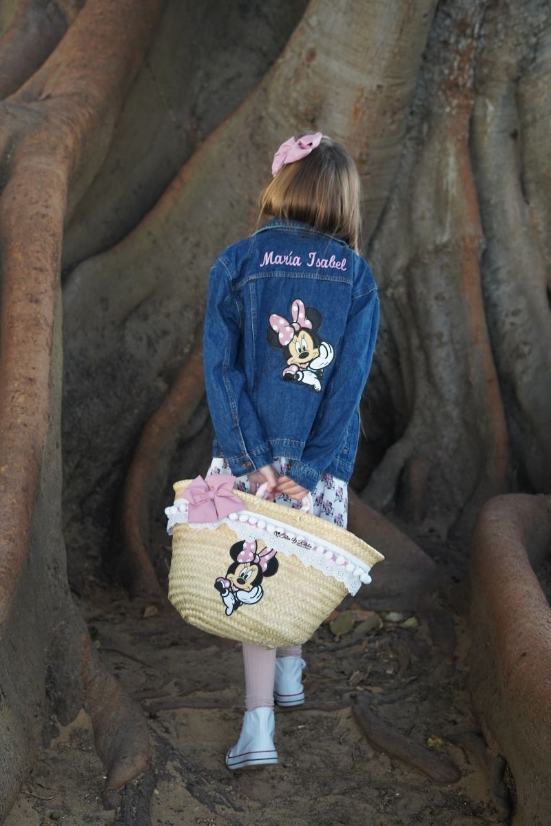 Chaqueta vaquera de la minnie mouse con el lazo en rosa.