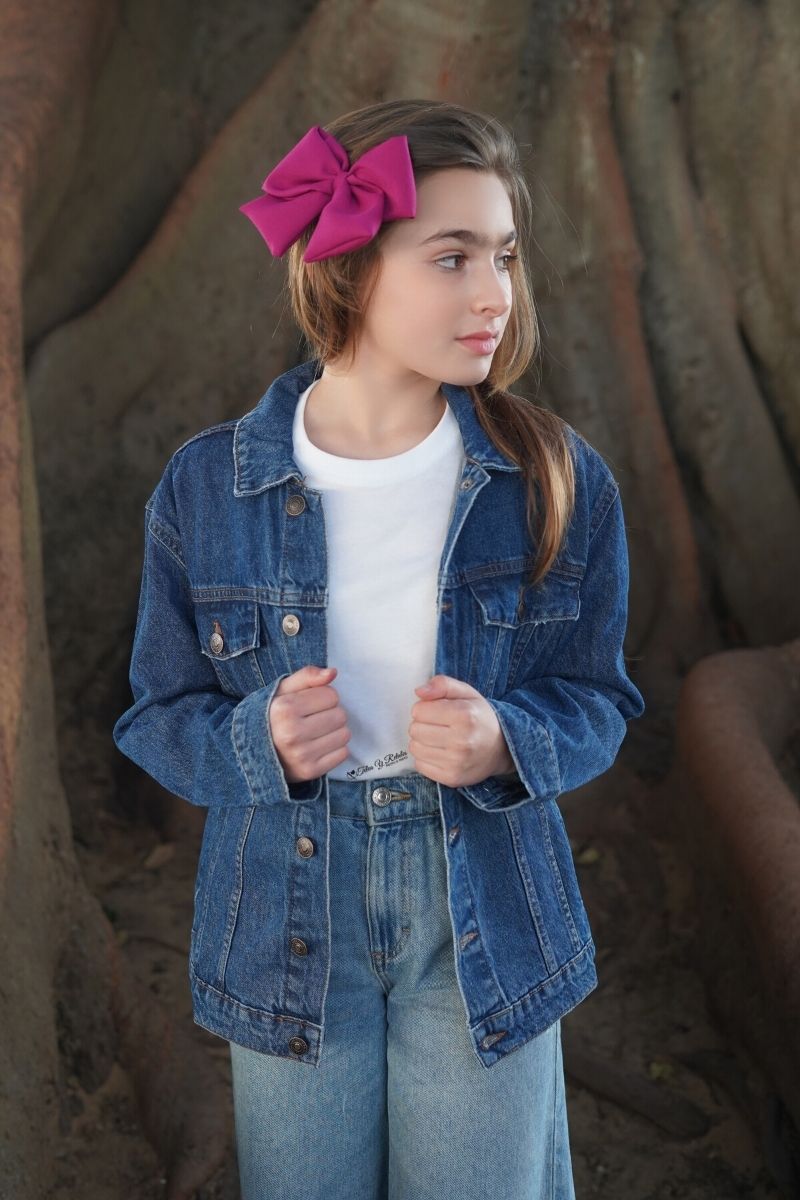 Chaqueta vaquera oscura con bolsillos delanteros. Puedes elegir esta misma chaqueta cambiándole la talla y el nombre.