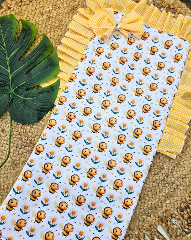 La colchoneta para silla de paseo diseño abejitas es ideal para añadir comodidad y estilo a los paseos con tu bebé. Con medidas de 84 cm de largo, 33 cm de ancho y un volante decorativo de 5 cm, se adapta a la mayoría de las sillas de paseo estándar. Su diseño de abejitas aporta un toque divertido, mientras que sus materiales transpirables y suaves garantizan el confort del bebé. Es fácil de colocar, gracias a sus ranuras para arneses, y lavable a máquina para mayor practicidad. Protege la silla de manchas y desgaste, combinando funcionalidad y estilo en un solo producto.