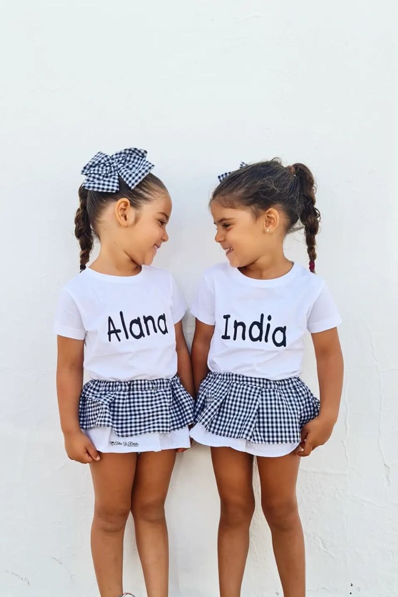 Conjunto camiseta con nombre y cubrefalda de cuadro vichy negro