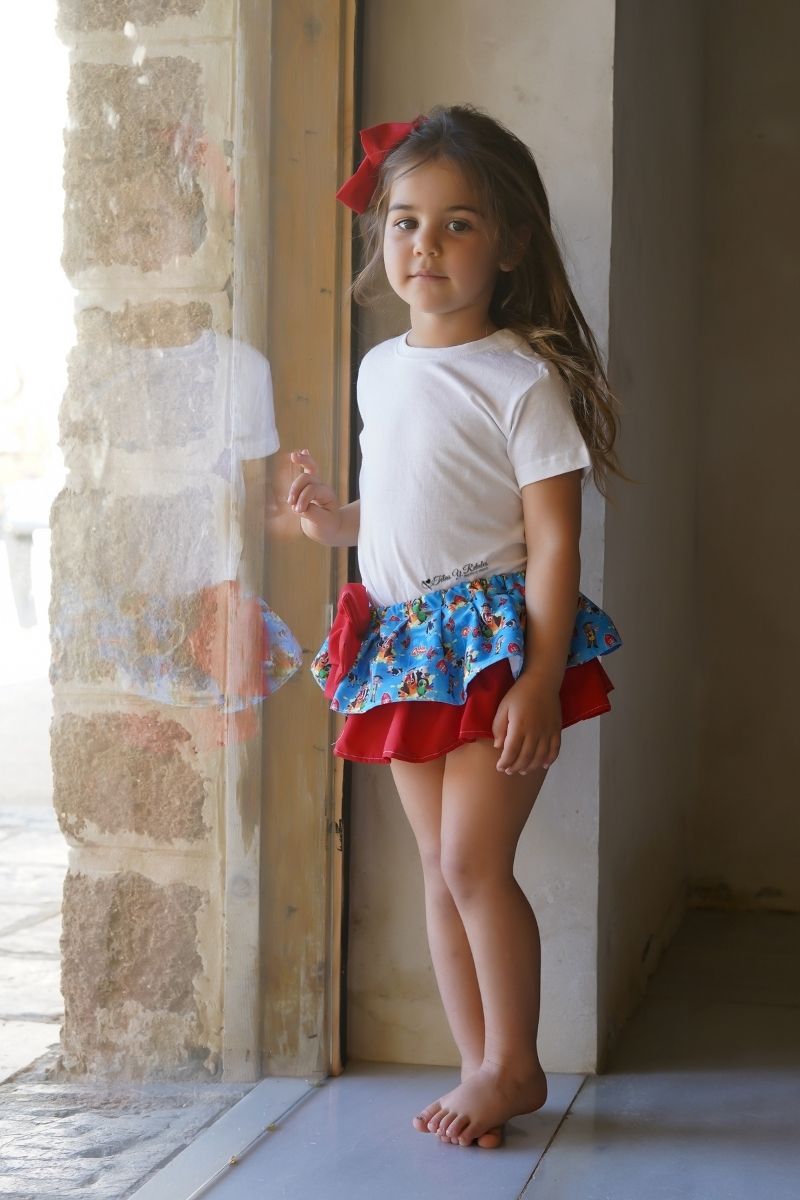 Este conjunto esta compuesto por camiseta y cubrefalda con volante. Elige la talla de tu peque y añádelo al carrito.