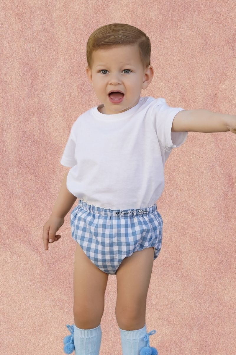 Si te gusta los cuadros de vichy estas en la web perfecta. Conjuntos personalizados de tela de cuadros de vichy celeste que podrás encontrar en Telas y Retales. Elige la talla perfecta d tu peque y al carrito.