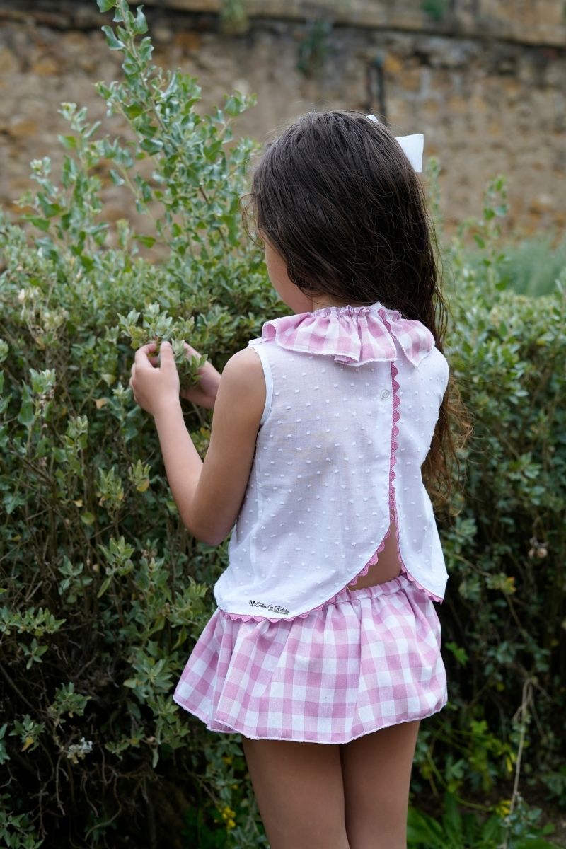 Modelo | Conjunto-camisa-plumeti-braga-volante-vichy-rosa |