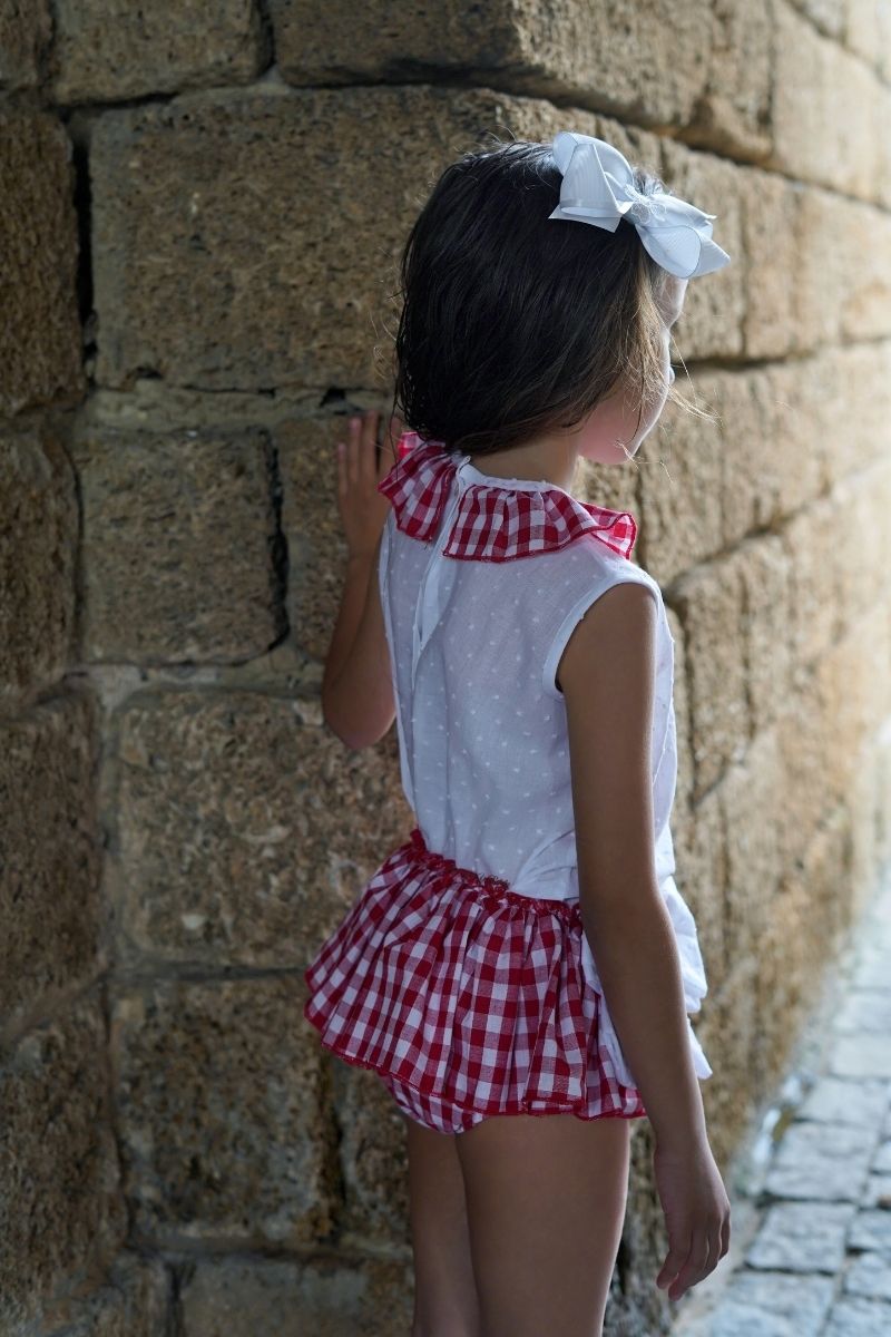 Modelo | Conjunto-camisa-plumeti-bragas-volante-vichy-rojo |