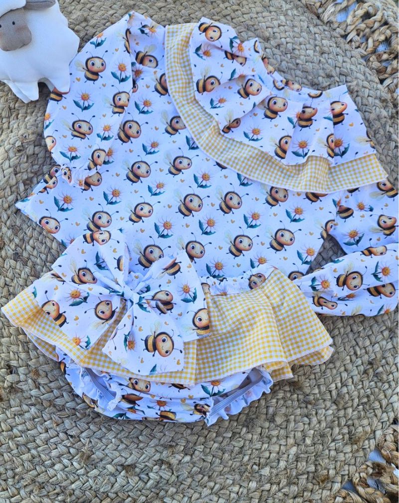 | Modelo | Conjunto-camisa-cubrepañal-volantes-abejita |