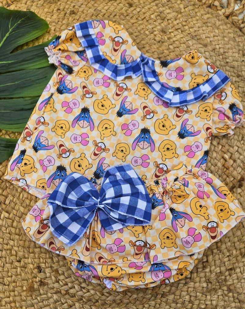 Conjunto de camisa manga corta y cubrepañal con volantes The Winnie the Pooh: comodidad y estilo para los más pequeños