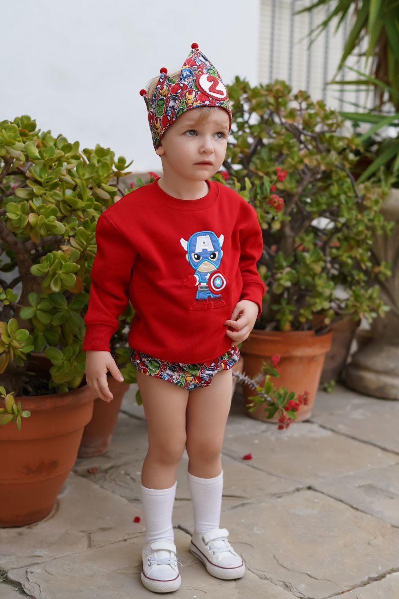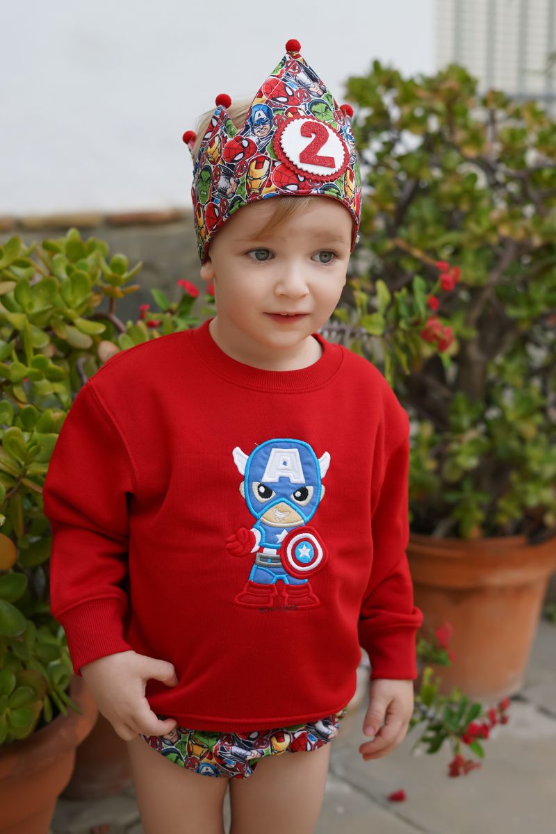 ¡Celebra un cumpleaños épico con nuestro Conjunto de Cumpleaños Capitán América! Este conjunto incluye una sudadera con el icónico personaje Capitán América, una corona y un cubrepañal, todo inspirado en el superhéroe favorito de tu pequeño. Nuestra sudadera es cómoda y duradera, perfecta para usar en cualquier ocasión. La corona agrega un toque especial a la celebración y el cubrepañal asegura que tu bebé se vea adorable y esté listo para la fiesta. Con este conjunto, tu hijo se convertirá en el héroe de su propio cumpleaños. ¡Haz que su día sea inolvidable con el Conjunto de Cumpleaños Capitán América!»