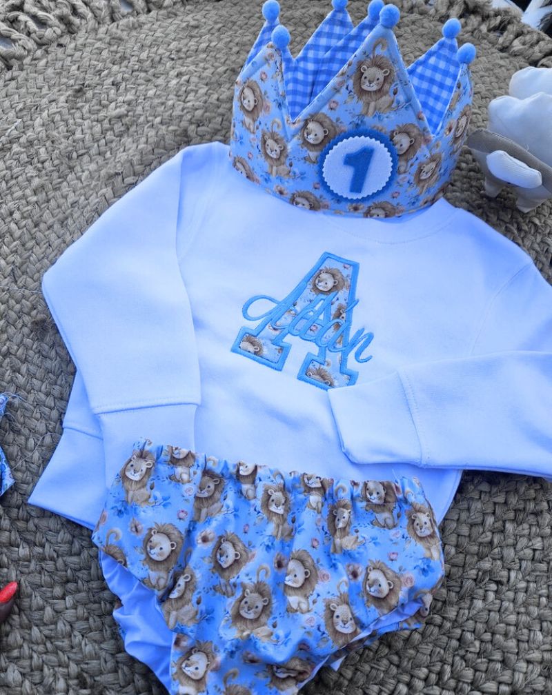 Haz que el cumpleaños de tu pequeño sea inolvidable con el conjunto de cumpleaños León de Telas y Retales. Diseñado especialmente para celebrar su día especial, este conjunto de moda infantil combina diversión, comodidad y estilo. Con un diseño alegre y lleno de vida, tu hijo o hija será el centro de todas las miradas.