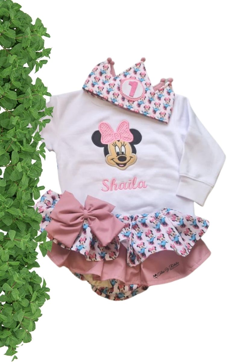 Exclusivo conjunto de cumpleaños de una de los personajes más querido de disney, Minnie Mouse. Tu peque tiene que estar preciosa el día de su cumpleaños con este modelito.