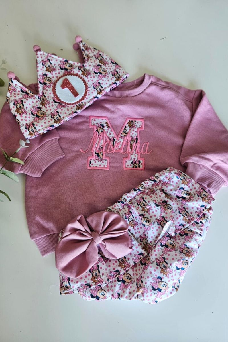 ¡Celebra el cumpleaños de tu pequeña con estilo y encanto con nuestro Conjunto de Cumpleaños Minnie Mouse! Este adorable conjunto incluye corona de cumpleaños, una sudadera junto con un cubrepañal con volantes a juego. Con el icónico diseño de Minnie Mouse, tu bebé lucirá simplemente encantadora en su día especial. El tejido suave y cómodo garantiza la felicidad de tu pequeña durante toda la celebración. ¡Haz que su cumpleaños sea inolvidable con este conjunto único! Descubre la magia de Minnie Mouse y crea recuerdos entrañables. ¡Compra ahora y dale a tu bebé un cumpleaños lleno de alegría y estilo!