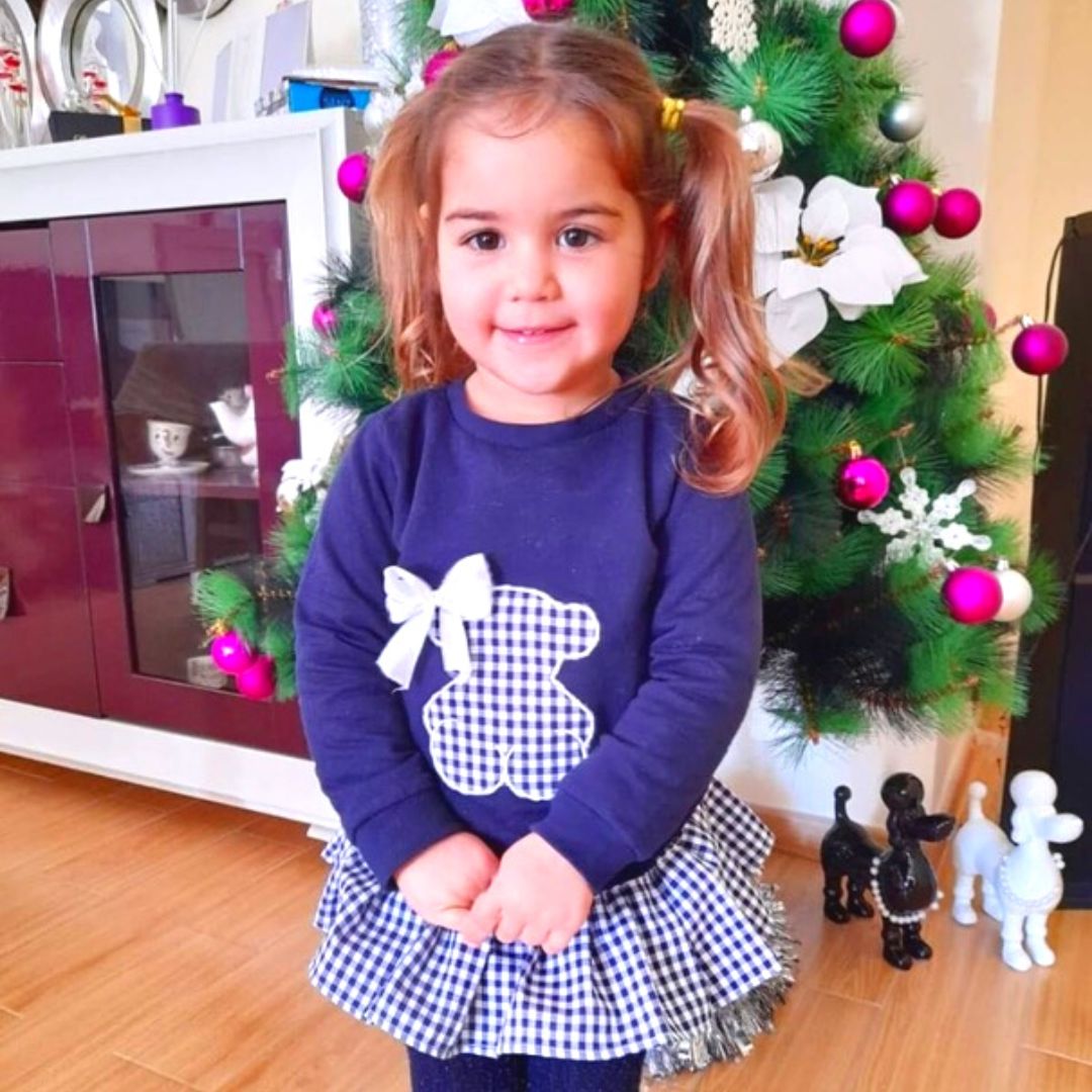 Este conjunto está compuesto por sudadera y cubrefalda. Puedes elegir este mismo conjunto cambiándole la talla.