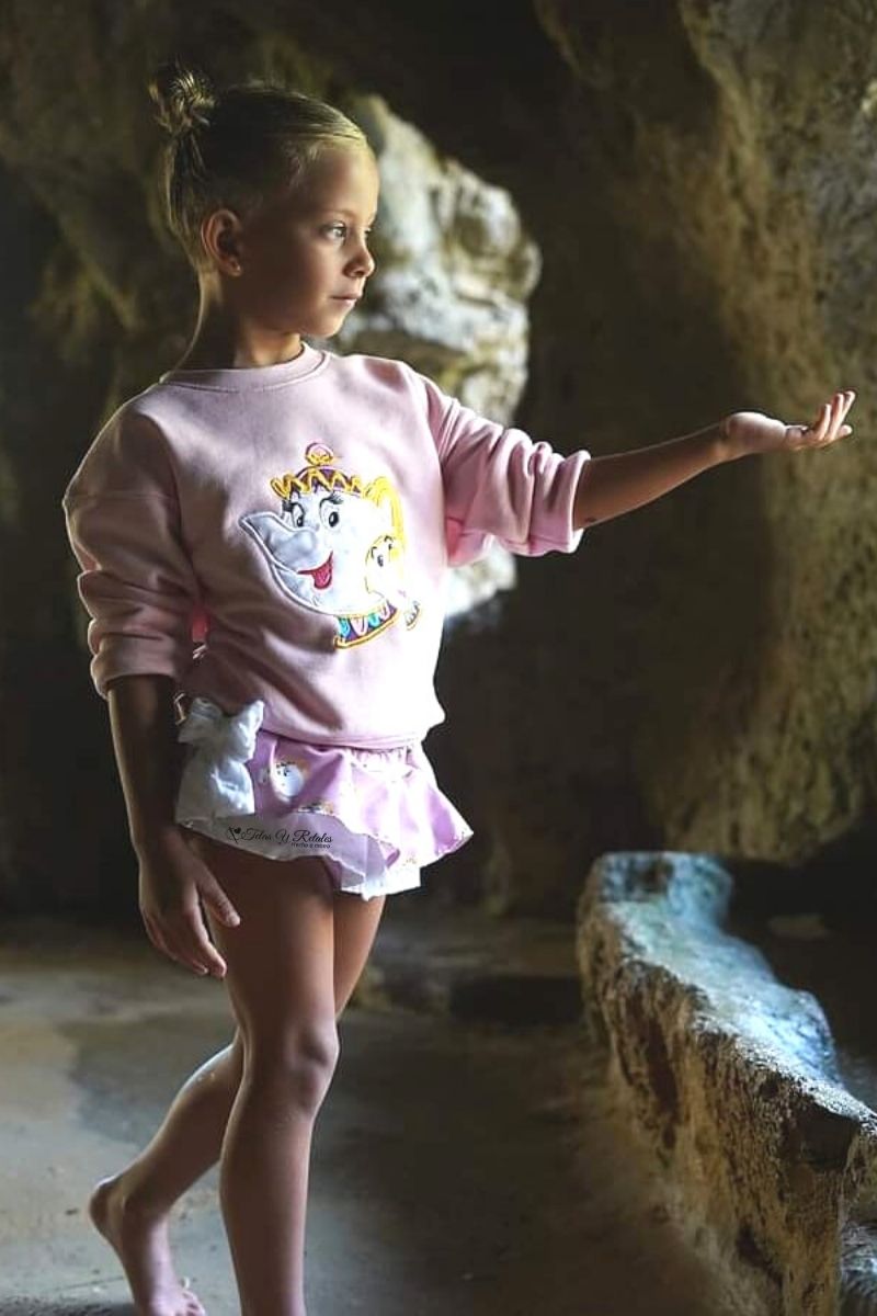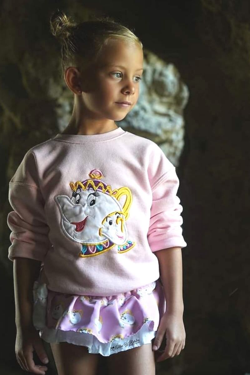 Este conjunto está compuesto por sudadera y cubrefalda. Puedes elegir este mismo conjunto cambiándole la talla.