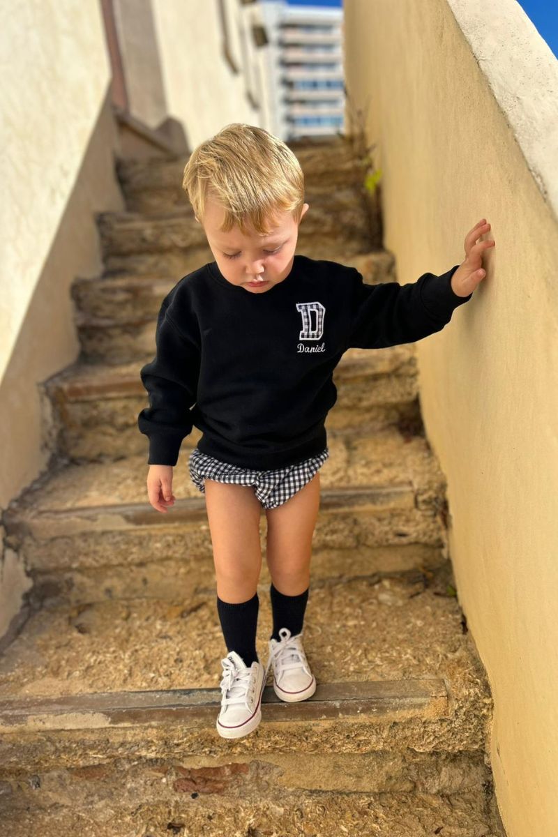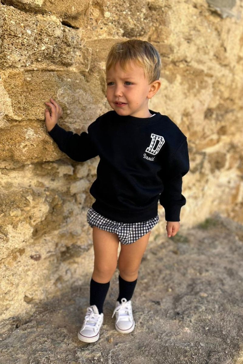 El Conjunto Sudadera azul con inicial y nombre y Cubrepañal de cuadros Vichy azul es la elección perfecta para bebés con estilo. Nuestra sudadera azul marino de alta calidad ofrece comodidad y calidez, mientras que el cubrepañal de cuadros Vichy azul marino agrega un toque de elegancia. Con la opción de personalizar la sudadera con la inicial y el nombre de tu pequ, este conjunto es único y memorable. Hecho con materiales suaves y duraderos, es ideal para cualquier ocasión. ¡Haz que tu peque destaque con este conjunto de moda! Descubre la combinación perfecta de confort y estilo para tu peque con nuestro Conjunto Sudadera azul con inicial y nombre y Cubrepañal de cuadros Vichy azul.