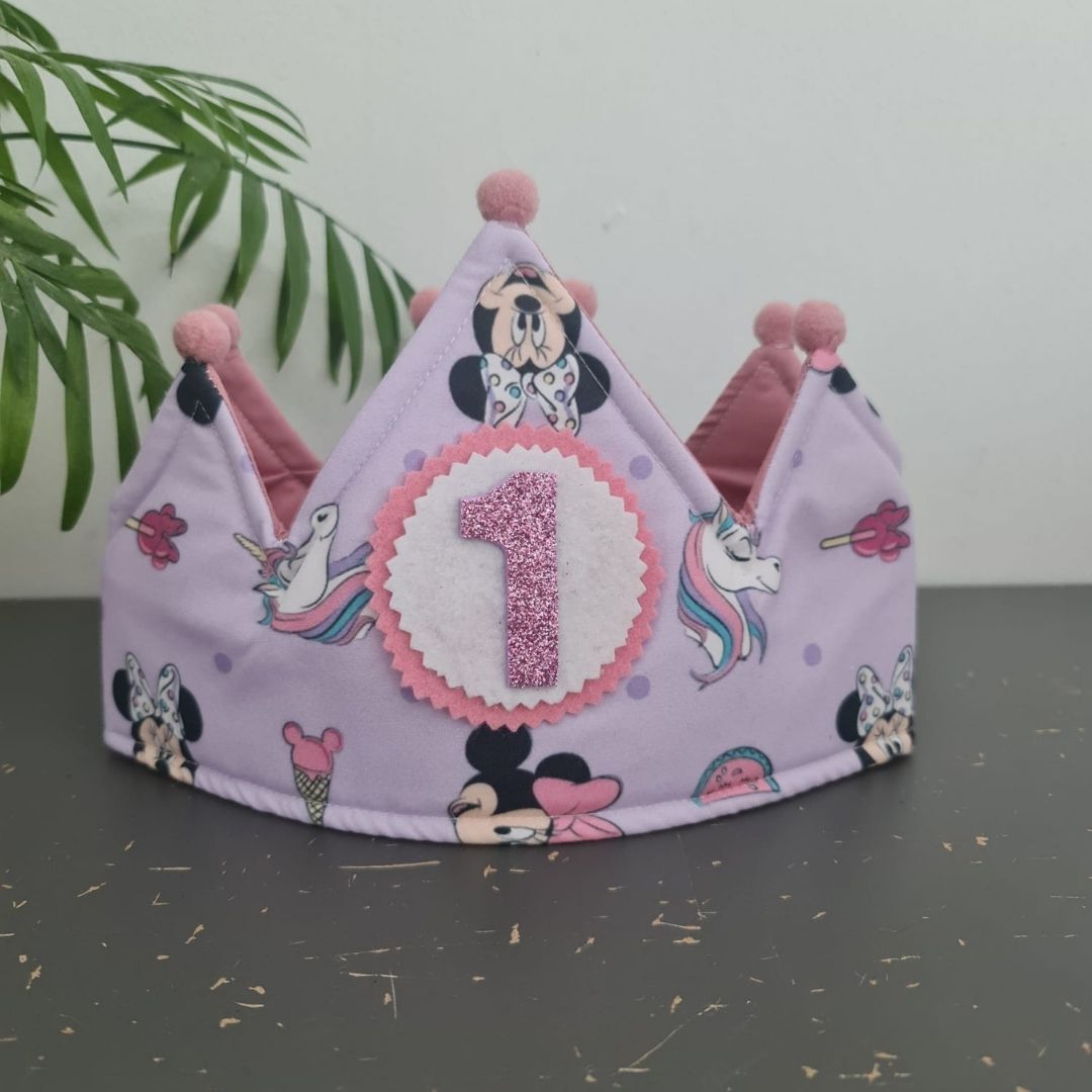 Corona de cumpleaños Minnie lila. Esta corona de cumpleaños en la cual solo puedes modificar la edad de tu peque.