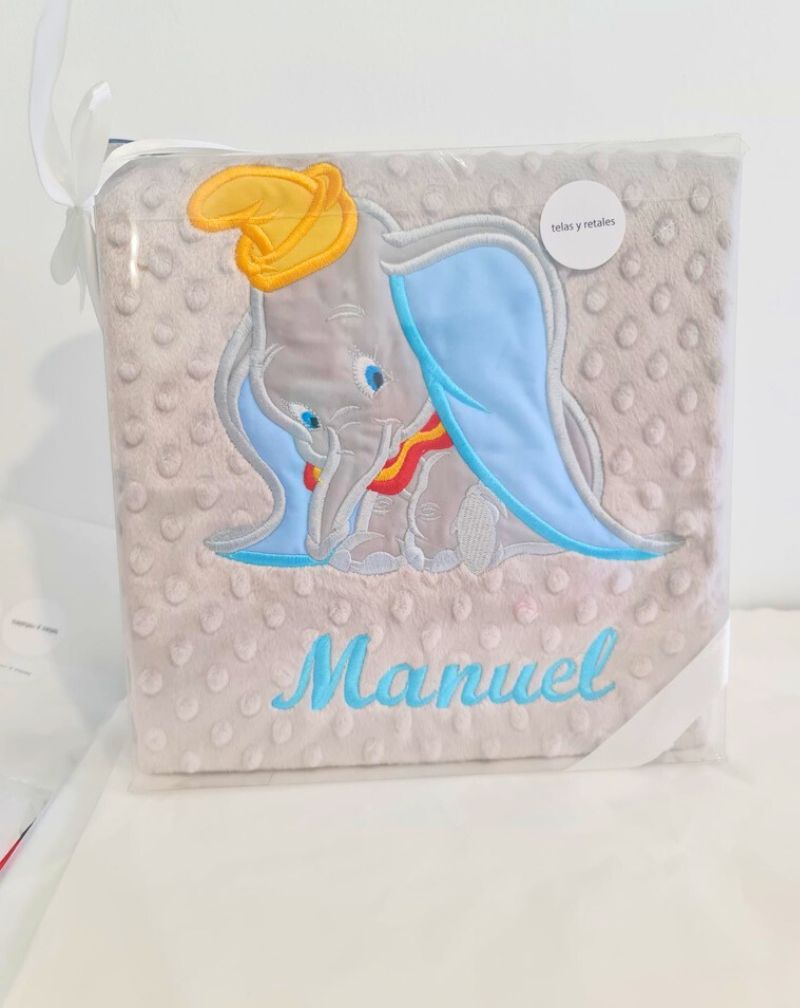 Descubre la ternura y suavidad de nuestra Manta Dumbo 🐘✨, un complemento perfecto para tu bebé, disponible en www.telasyretales.com. Esta manta infantil está confeccionada de manera artesanal, con materiales de primera calidad que cuidan la piel delicada de los más pequeños, asegurando calidez y confort en cada uso. Su diseño, inspirado en el entrañable personaje de Disney, Dumbo, la convierte en una opción ideal para regalar o para acompañar a tu bebé en cochecitos, cunas o durante sus momentos de descanso.