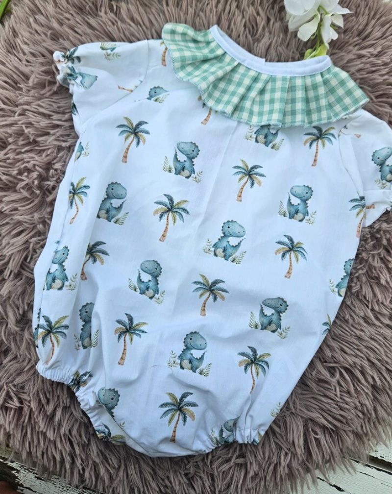 Fabricado con materiales transpirables y resistentes, el pelele dinosaurio es ideal tanto para verano como para entretiempo. Su tela permite que el aire circule, evitando la sudoración excesiva y manteniendo la piel del bebé siempre fresca y seca. Además, es una prenda fácil de lavar y mantener, asegurando durabilidad y resistencia tras múltiples lavados.