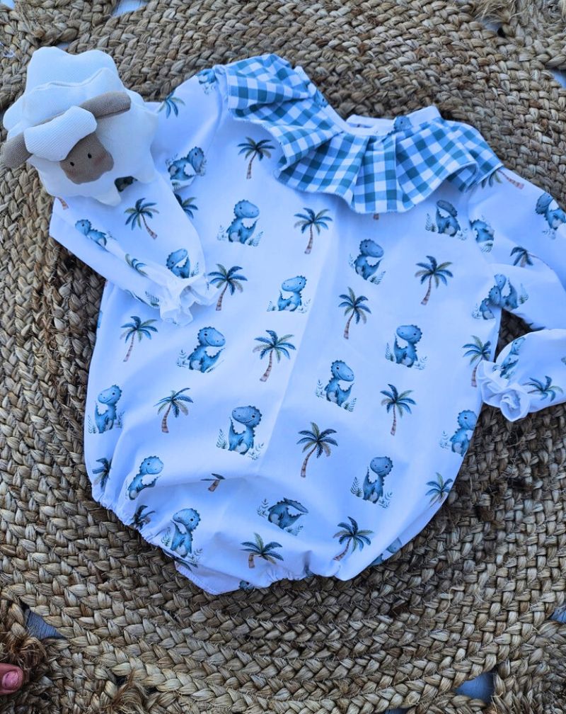Fabricado con materiales transpirables y resistentes, el pelele dinosaurio es ideal tanto para verano como para entretiempo. Su tela permite que el aire circule, evitando la sudoración excesiva y manteniendo la piel del bebé siempre fresca y seca. Además, es una prenda fácil de lavar y mantener, asegurando durabilidad y resistencia tras múltiples lavados.