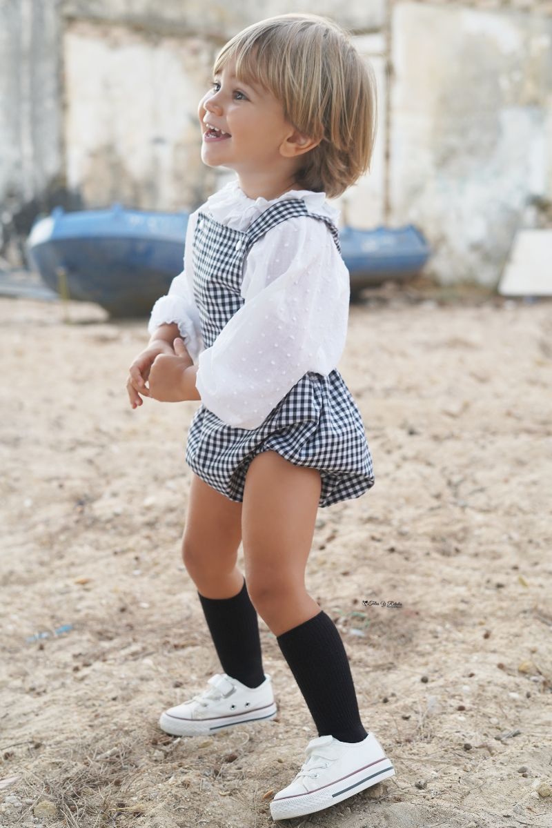 Sabemos lo que te gusta los cuadros vichy para la ropa de tu peque. En Telas y Retales para esta nueva temporada Otoño – Invierno 2022 hemos diseño este nuevo peto de cuadros vichy negro y blanco. Le puedes incluir esta bonita camisa de plumeti blanca con cuello y mangas largas. ¡Toda una preciosadad!