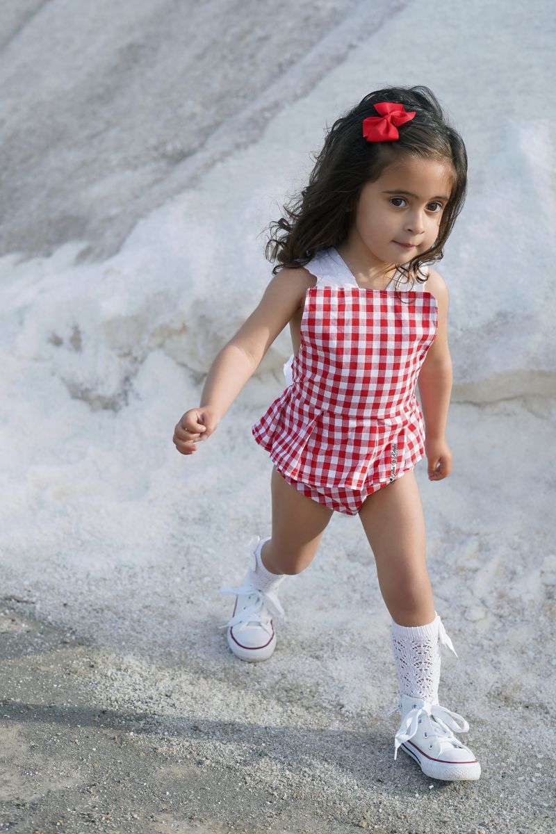 La tela de cuadro de vichy esta de moda y en Telas y Retales no podemos dejarlo pasa. ¿Qué os parece este peto con volante como nuevo diseño? Elige la talla de tu peque y al carrito.