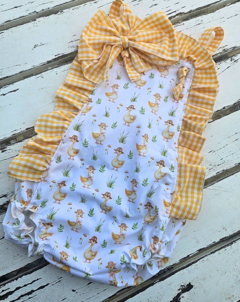 Peto Diseño Patitos con Tela de Cuadros Vichy Amarillo: Dulzura y Comodidad para Niños y Niñas