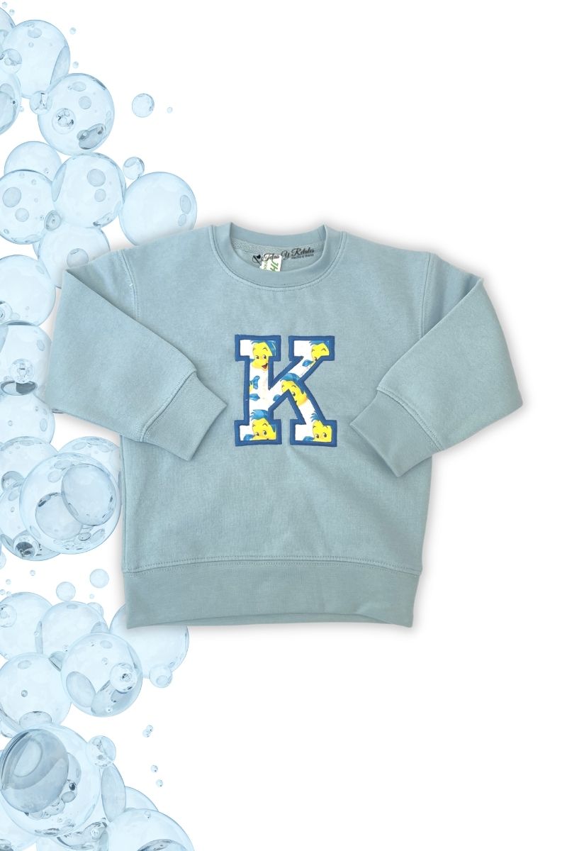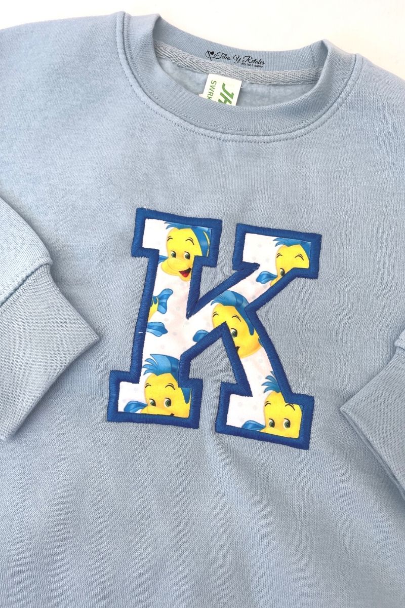 InicioTiendaSudaderasSudadera celeste con inicial flounder