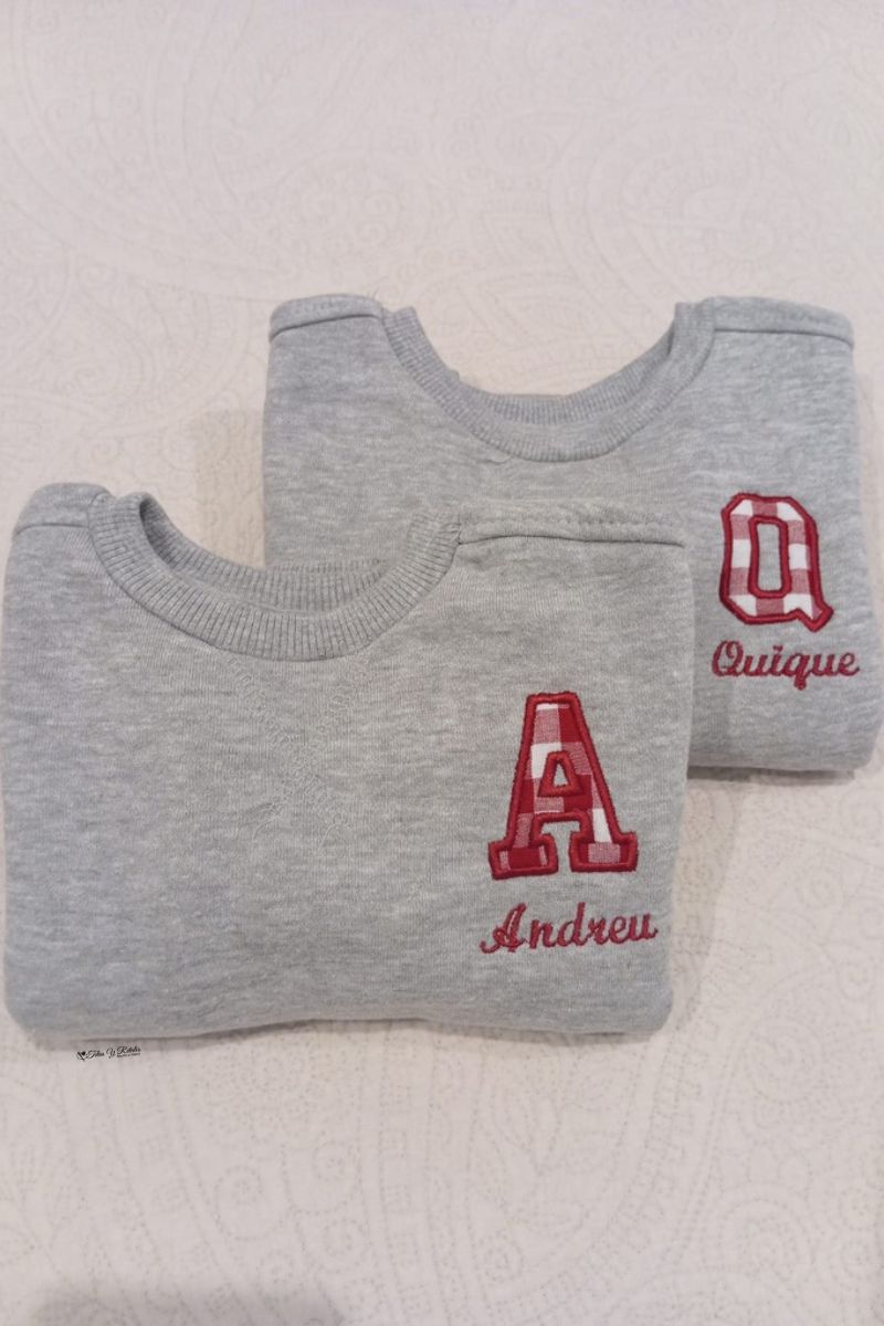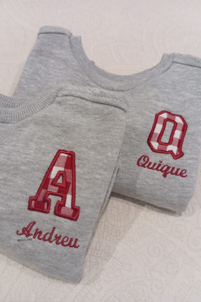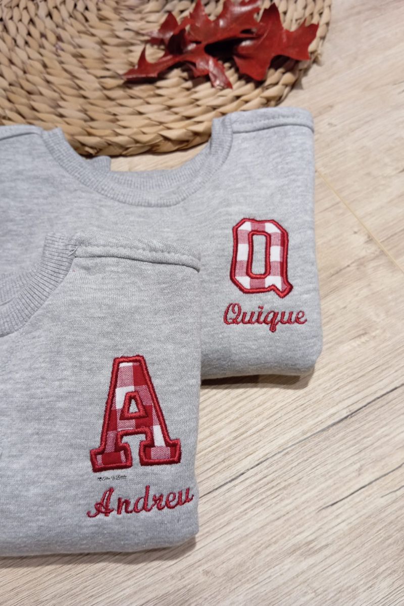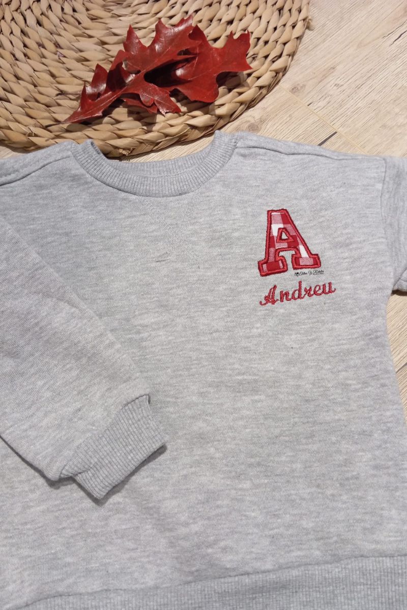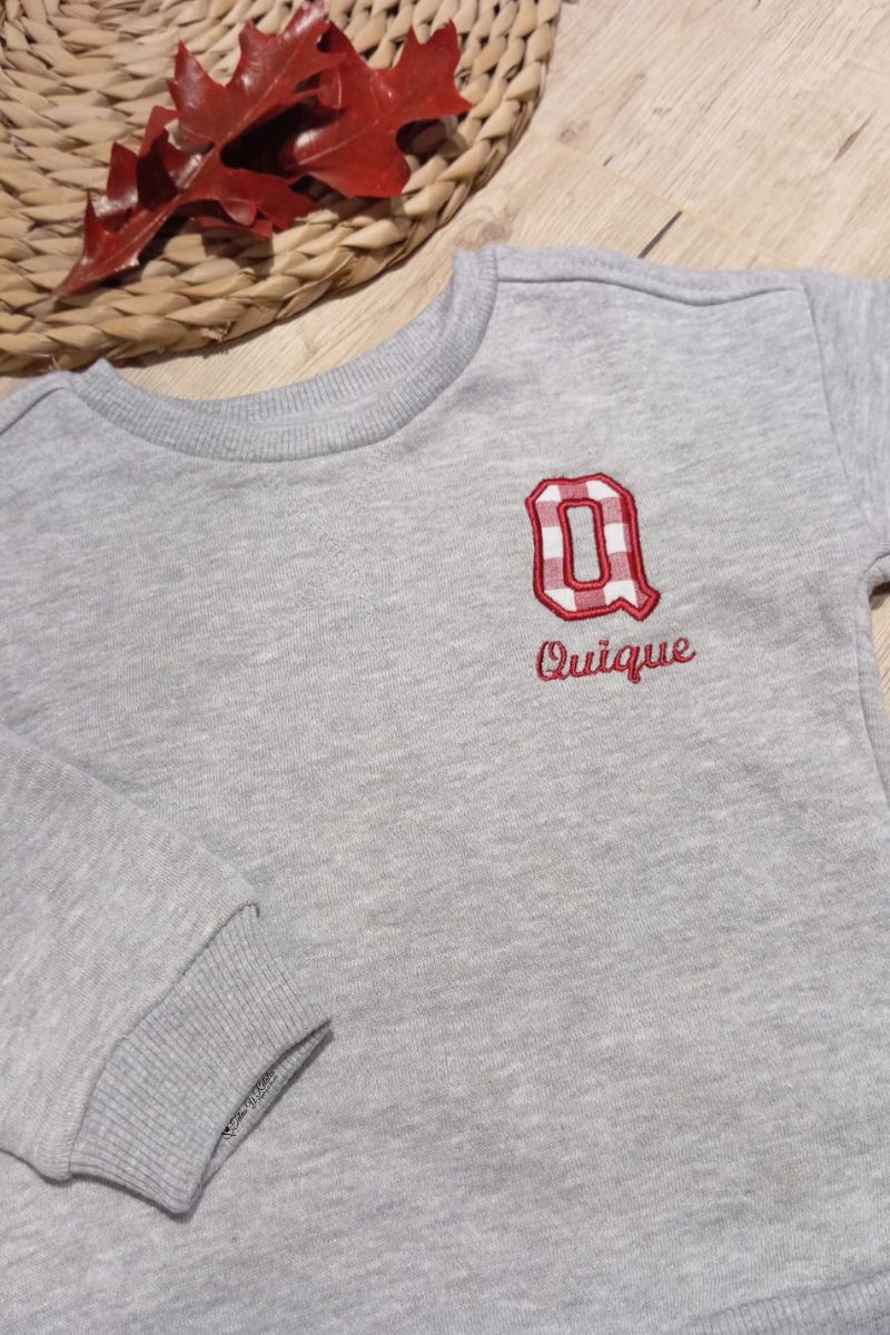 Sudadera gris personaliza con inicial y nombre en cuadros vichy