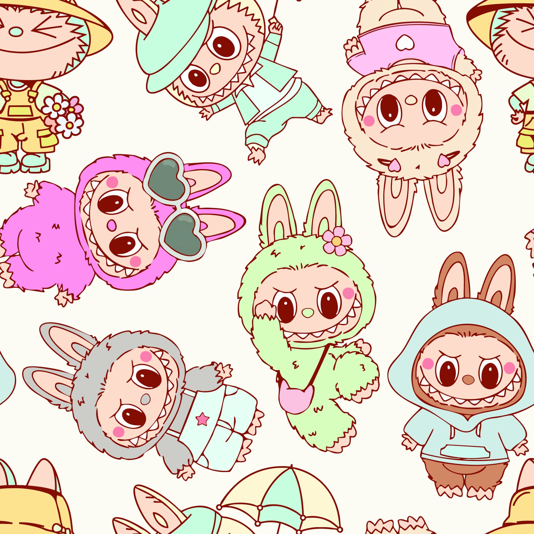 • Colores: Fondo crema con personajes en tonos pastel (rosa, verde menta, celeste, lila y amarillo)