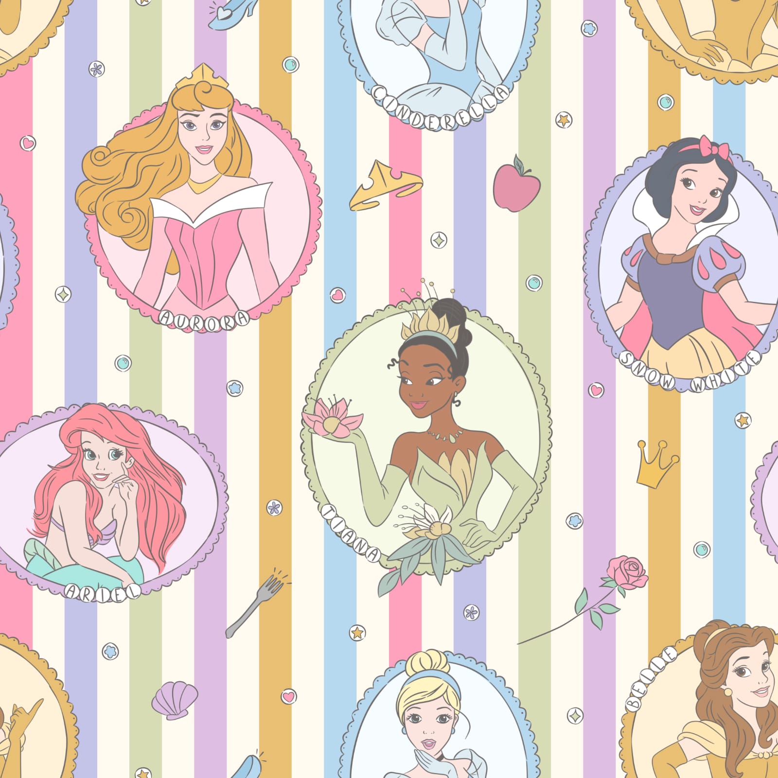 👑 ¡La magia de los cuentos de hadas llega en forma de tela! Nuestra Tela Disney Princesas Pastel es perfecta para quienes sueñan con crear proyectos llenos de dulzura, fantasía y encanto. Este precioso estampado reúne a algunas de las princesas más queridas de Disney sobre un delicado fondo de rayas en tonos pastel, acompañado de pequeños detalles icónicos como coronas, flores y símbolos mágicos. Ideal para confecciones y manualidades que quieran transmitir un estilo tierno, elegante y muy especial 🌸