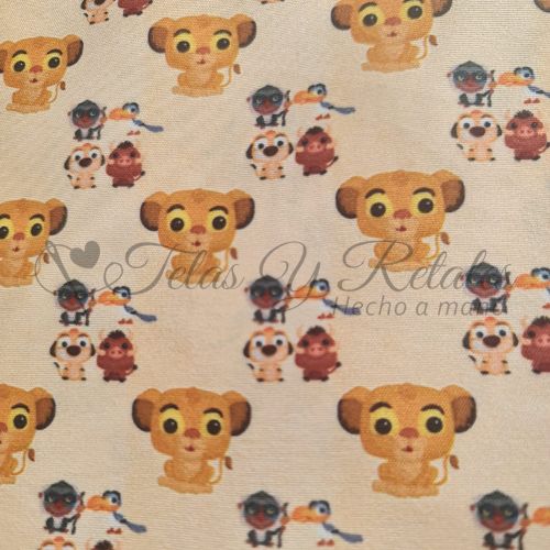 Tela Popelin de Algodón 100% Rey León. Pedido mínimo de 0,5 m. El ancho de la tela es de 160 cm. Telas exclusivas de Telas y Retales.