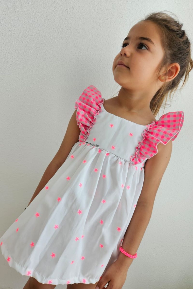 Descubre el encantador Vestido Blanco de Estrellas Rosa Fluor y Mangas Volantes Cuadros Vichy Rosa Fluor, la elección perfecta para niñas que buscan estilo y comodidad. Este vestido infantil destaca por su diseño único y vibrante, ideal para cualquier ocasión especial. Fabricado con materiales de alta calidad, ofrece suavidad y durabilidad. Las mangas con volantes y el estampado de estrellas y cuadros vichy añaden un toque de diversión y elegancia. Compra ahora y lleva la moda infantil a otro nivel con este impresionante vestido. Encuentra el Vestido Blanco de Estrellas Rosa Fluor en nuestra tienda online y haz que tu niña brille.