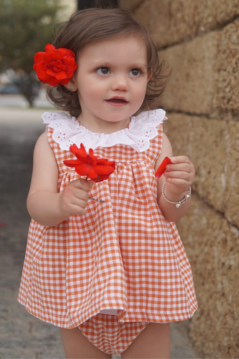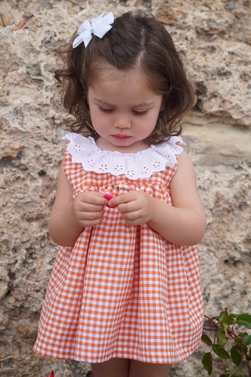 Descubre el encantador Vestido con bragas cuadros vichy naranja, ideal para tu pequeña. Este conjunto de moda infantil combina estilo y comodidad, perfecto para cualquier ocasión. El estampado clásico de cuadros vichy en vibrante naranja aporta un toque alegre y moderno. Confeccionado con materiales de alta calidad, garantiza suavidad y durabilidad. El vestido incluye bragas a juego, ofreciendo una solución completa y práctica para el vestuario diario de tu hija. Disponible en varias tallas, este vestido es imprescindible en el guardarropa de cualquier niña. Compra ahora y viste a tu pequeña con estilo y elegancia.
