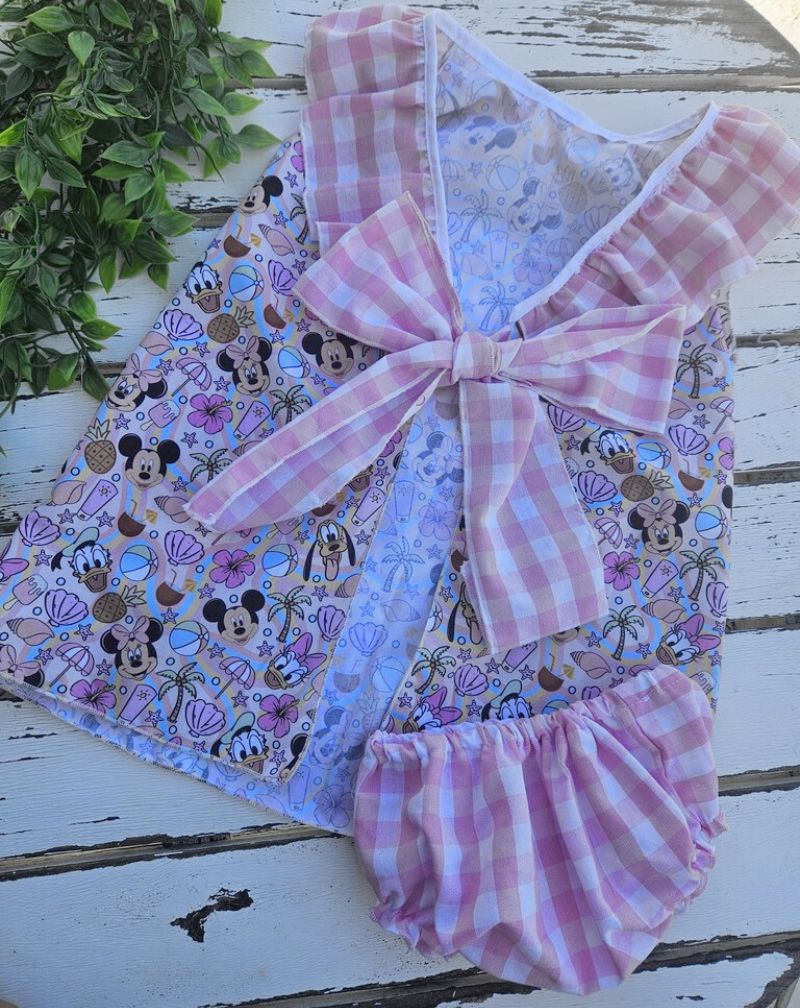 El vestido Disney veraniego con braguitas de cuadros vichy rosa de www.telasyretales.com es una prenda artesanal perfecta para el verano. Confeccionado a mano con tejidos suaves y transpirables, combina el encanto de los personajes Disney con un clásico diseño vichy rosa. Es ideal tanto para ocasiones especiales como para el día a día, aportando comodidad y estilo. Los pedidos se elaboran tras la confirmación del pago y tardan entre 10 y 15 días hábiles, con entrega en 48-72 horas hábiles. Un conjunto único, hecho con cariño, para que tu pequeña luzca radiante y mágica este verano. 🌸👧🎀